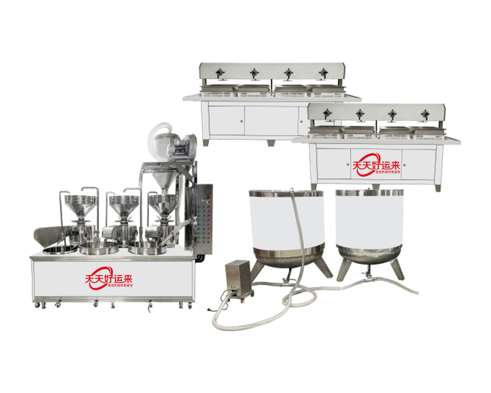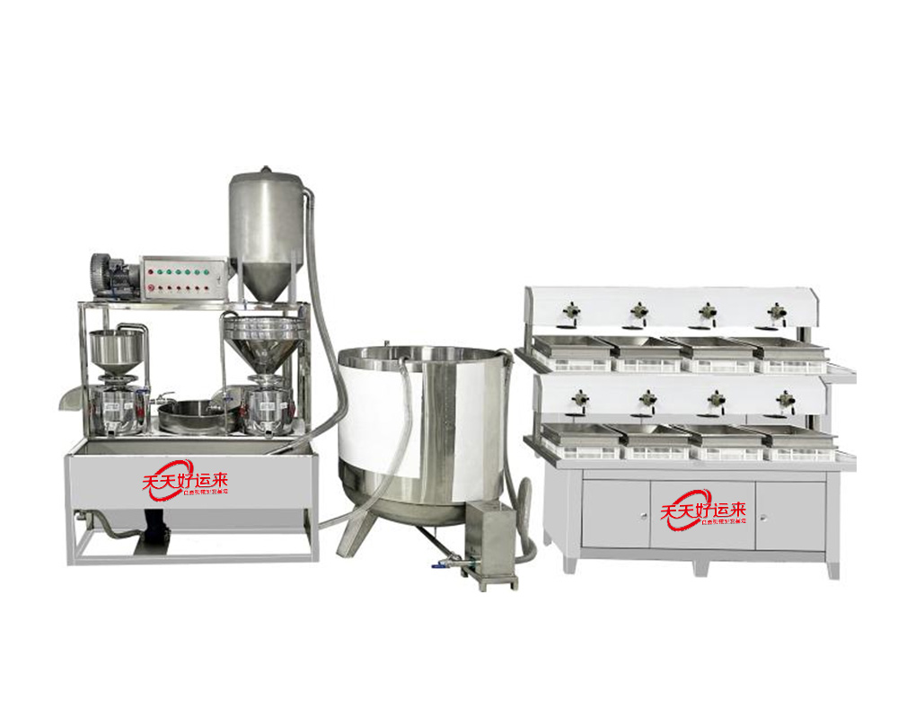 我公司生產(chǎn)豆腐機(jī)在國內(nèi)是較早的企業(yè),多年來通過對設(shè)備的不斷改進(jìn),利用現(xiàn)代科技與傳統(tǒng)工藝的完美結(jié)合。使設(shè)備外觀設(shè)計美觀、智能化高,操作簡單,主要有自動上豆系統(tǒng)、磨漿機(jī)系統(tǒng)、拌渣提升系統(tǒng)、煮漿桶(蒸氣機(jī)用戶自備)、成型機(jī)等組成。機(jī)器采用不銹鋼制造,干凈衛(wèi)生,技術(shù)領(lǐng)先,質(zhì)量可靠,經(jīng)久耐用。實現(xiàn)了批量生產(chǎn)過程自動化,具有高效、省時、耗能低等優(yōu)點(diǎn)。采用先進(jìn)空真上豆技術(shù)和連續(xù)磨漿技術(shù),瞬間加熱工藝,保證了蛋白質(zhì)不受破壞,從而使生產(chǎn)出來的豆制品營養(yǎng)更豐富,味道更鮮美。工藝流程: 將浸泡好的黃豆由高速分離磨漿機(jī)加工,排出豆渣,產(chǎn)出的豆?jié){經(jīng)過蒸汽加熱達(dá)到去腥,并煮漿均質(zhì),并添加輔助原料消泡、凝固劑(如鹵水、石膏、內(nèi)脂、酸漿等)、成型和深加工處理便可產(chǎn)生出營養(yǎng)豐富的豆制品如:豆?jié){、豆腐腦、豆腐、豆干、豆皮、素雞、豆泡等制品,適用于大型賓館、超市、企業(yè)食堂、工程店及食品廠批量加工使用。